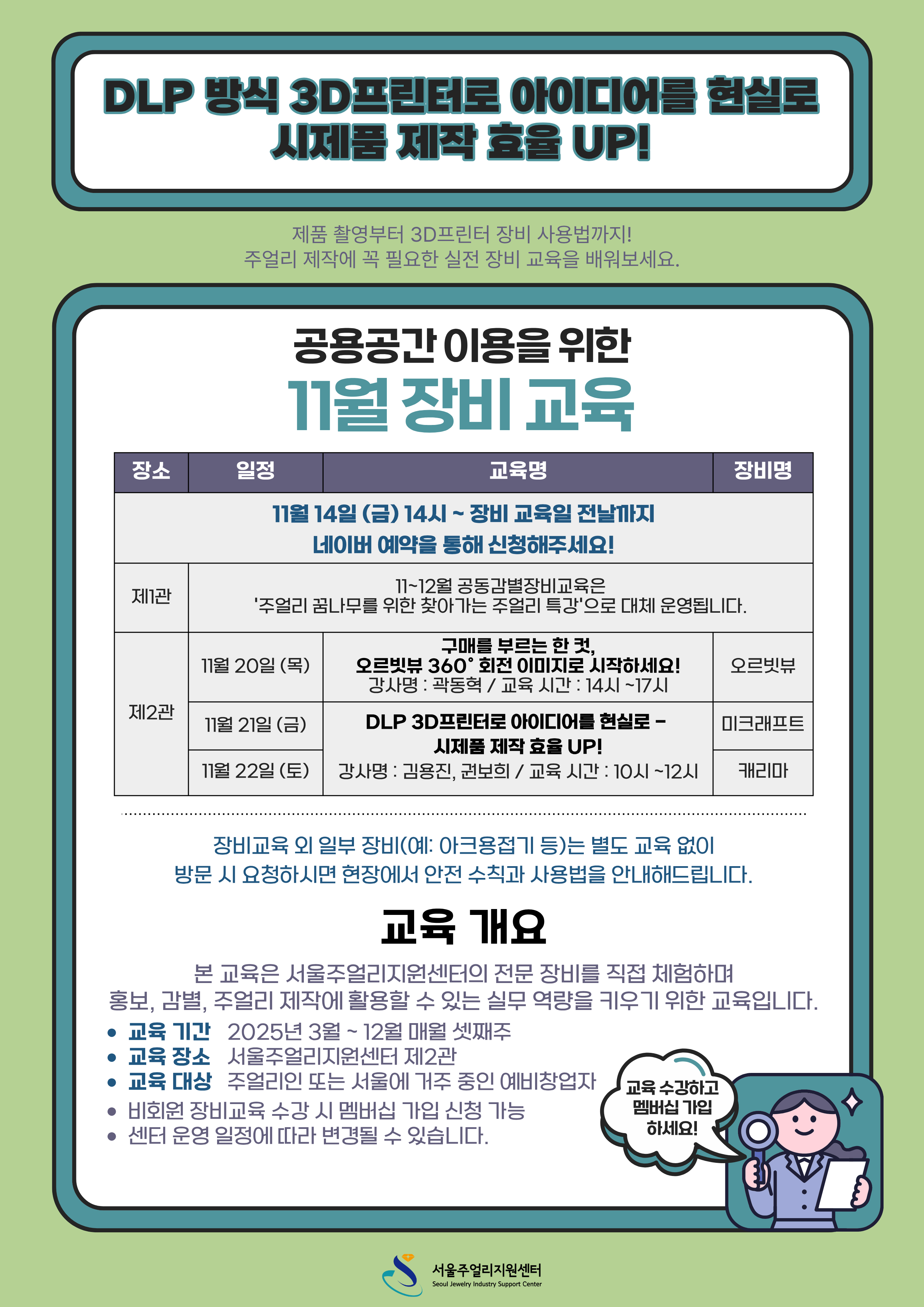 네이버 검색창에 '서울주얼리지원센터' 검색 → 원하는 장비 교육 선택 후 예약