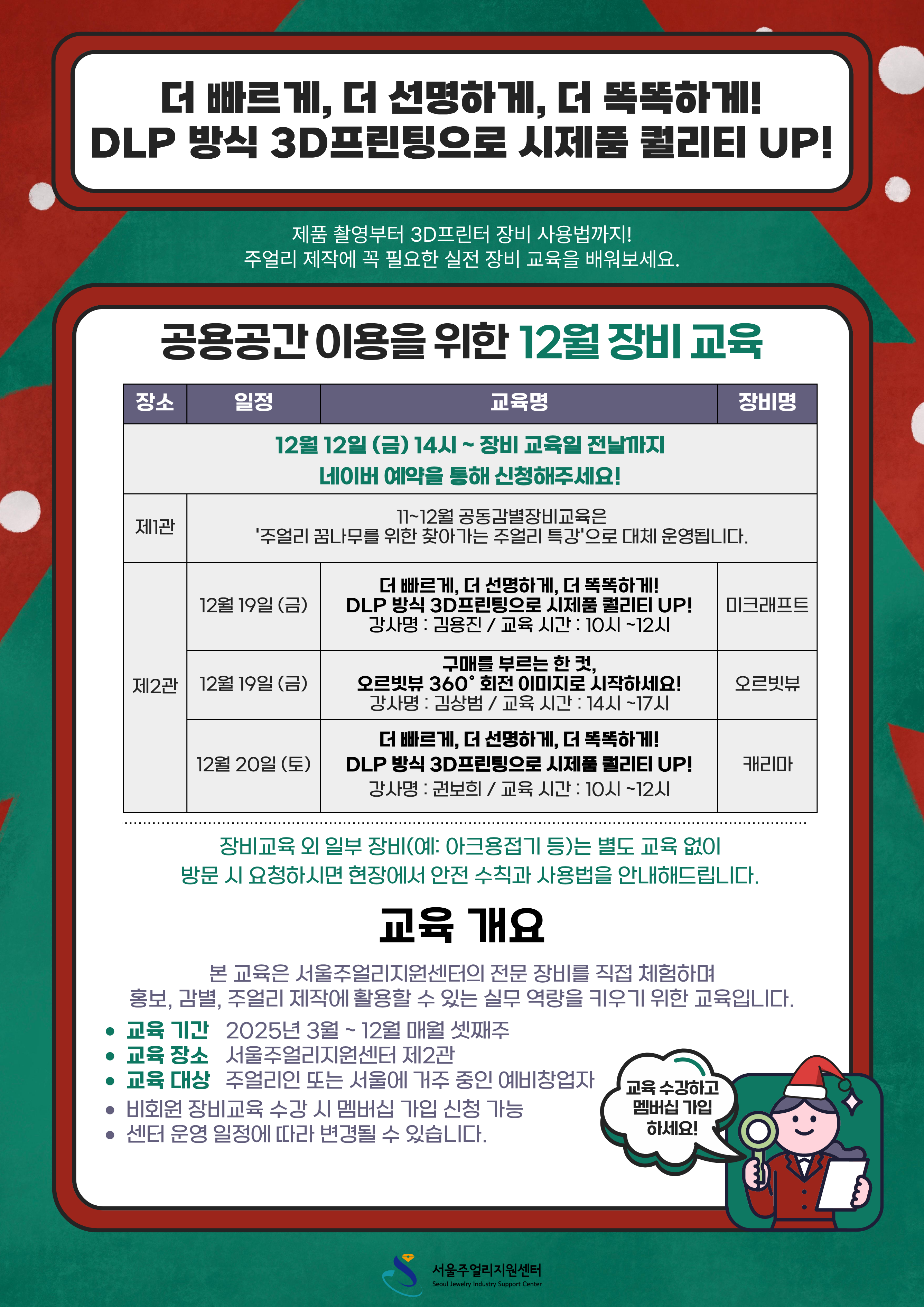 공용 공간 이용을 위한 12월 장비 교육 안내